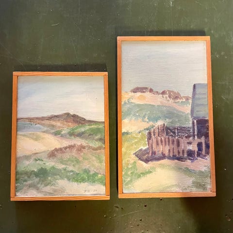 Nr. 190 -1 og 2. Sofie Eriksen (f. 1970) Google kunstneren. Landskabspartier fra Thy. 2 malerier, akryl på plade, sign. Sofie E. Pris pr stk.