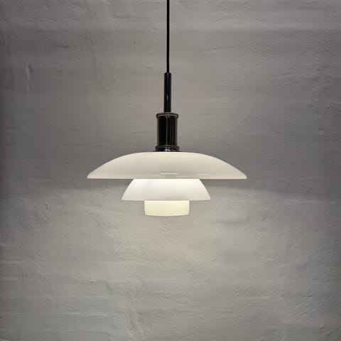 PH4½-4 pendel er medlem af 3-skærmsfamilien. Poul Henningsen (PH) designede 3-skærmssystemet i 1925-1926, hvor PH i samarbejde med Louis Poulsen tegnede de første lamper til en udstilling i Paris. Dette samarbejde varede helt frem til hans død i 1967.