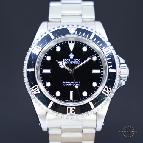 Rolex Submariner ref. 16610 fra 1991 men boks og service certifikat fra urmager 2022, et klassisk toolwatch med lidt patina med stadig skarp i kanter og flot og velholdt, ny bezel, et eftertragtet og spændende ur der kan holde til et aktivt liv.