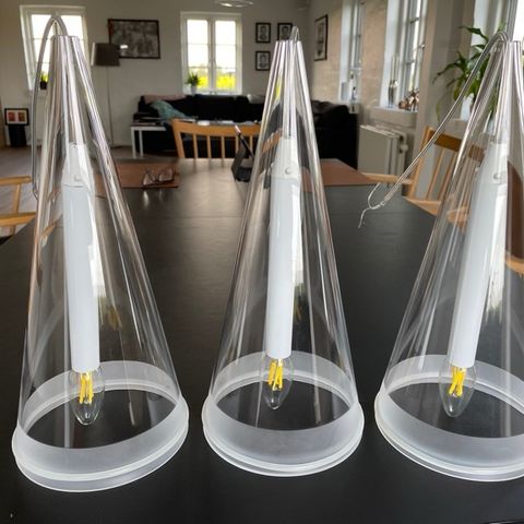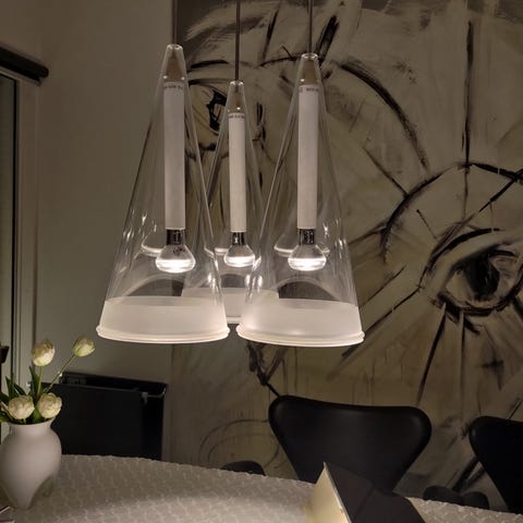 Brugt Flos pendel i god stand, model Fucsia 3 i glas inklusive lampeophæng.