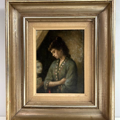 Motiv m rygvendt pige monteret i guldramme