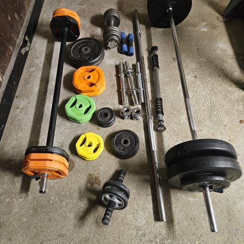 Håndvægte i flere vægtklasser og elastikker fra firma motionscenter,