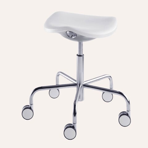Ergonomisk skammel til behandlinger, med sadelsæde for bedre og behagerligere arbejdsholdning.