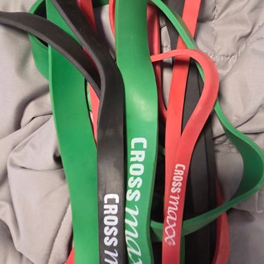 Super fedt træningssæt til crossfit, sættet består af 4 elastikker i forskellige sværhedsgrad, forskellige håndtag samt en praktisk taske til at opbevare det i.
