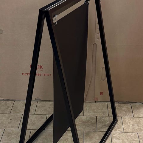 Vores ''Københavner'' gadeskilte er svejst i jern og pulverlakeret i sort eller hvid (alle ral farver kan vælges mod gebyr). Der medfølger en plade som følger vinden, hvor på du frit kan vælge valgfri tryk, det kan være din butiks logo, et godt tilbud eller noget helt tredje.