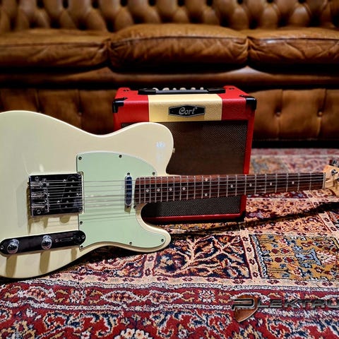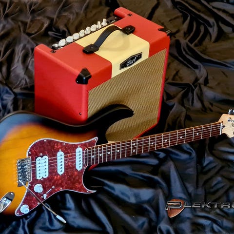 Guitaren er let-spillelig' og forstærkeren er 15W med 2-kanaler / forvrænger + clean samt rumklang