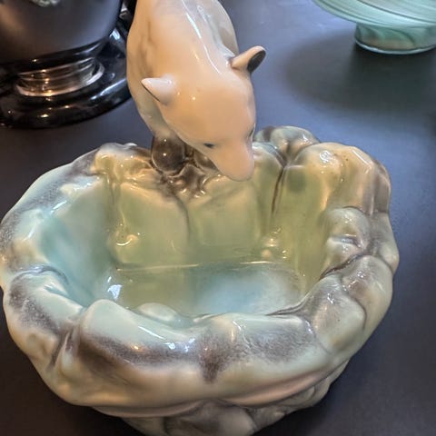Ditmar Urbach isbjørneskål, Tjekkisk design fra 1930erne. Her i flot stand, porcelænsfigur / fajance ved våge i isen. Længde: 22.00 cm / Højde: 18.00 cm / Bredde: 20.00 cm