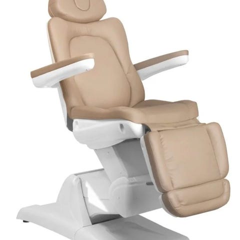 Super flot briks i flot cappucinofarvet kunstlæder, som er nemt at rengøre for bedre hygiejne. Der er 3 motorer som gør at stolen kan køres op og ned elektrisk samt justering af hoved og fodende.
