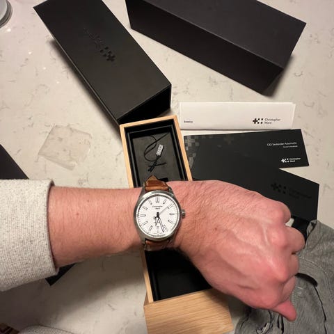 Monteret med sort gummirem, afsluttet med foldespænde med dykkerled i PVD behandlet ubådsstål. En anderledes feature ses ved klokken 6, hvor uret har en tørre enhed, der fjerner eventuelt fugt der måtte være inden i. Denne viser hvid / lys blå når alt er ok, og skal skiftes ved urmager når den viser mørkeblå.