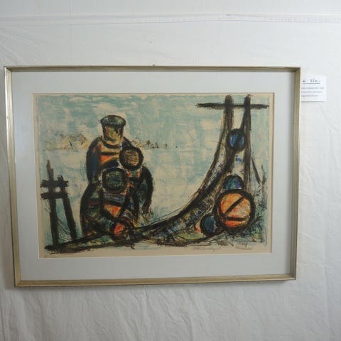 Anker Landberg ( 1916 - 1973) er uddannet på Kunstakademiet, og kendt for sine socialrealistiske malerier, med grove konturer med hverdag blandt arbejdere, fiskere m.fl. Sign. Anker Landberg 1970. Sølvramme med passepartout.