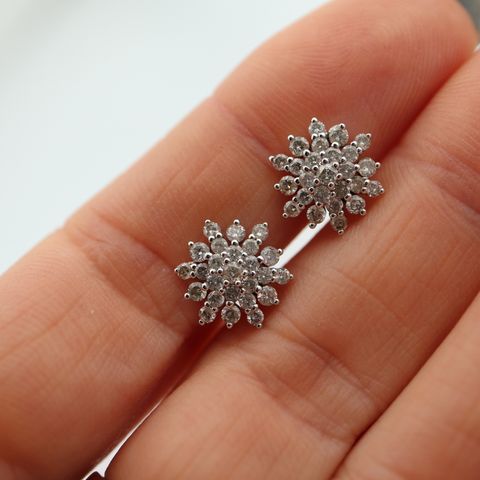 Blomster øreringe i hvidguld med diamanter
