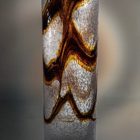Flot Spiegelau vase i perfekt stand, efter tysk speciel håndlavet glasteknik med transperant ydre glas, og hvis og kobberfarvet og rødt indre.