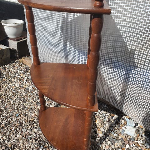 Høj reol med smalle hylder. Ejner sig godt til modelbiler-øldåsesamling eller andre småting. Prebensgenbrugsshop-Nakskov Lolland Falster.