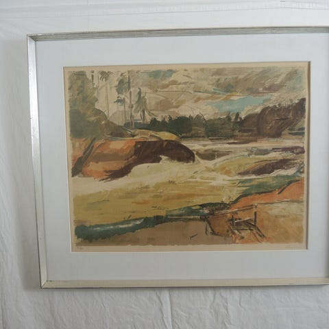 Landskab, ubekendt kunstner sign. Litografi. Sølvramme med passepartout.