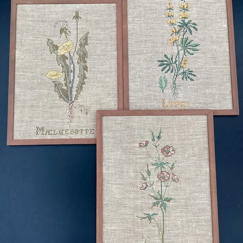FINESTE vintage broderier med ÅRSTIDERNE i smukke rammer:
