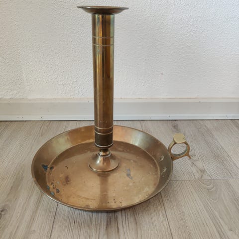 Flot kammerstage i messing, flot stand med begærnset patina.