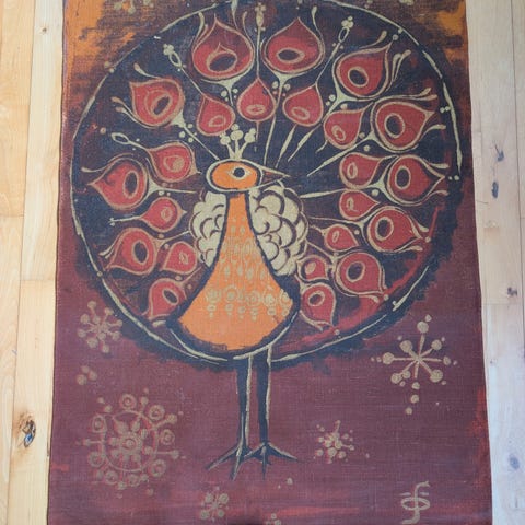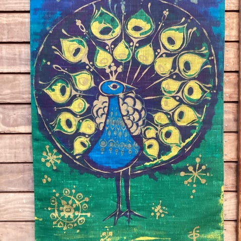 #vintage #vægophæng #trykpålærred #schöbel#vægtæppe#vægkunst#walltapestry#wallhanging #hansjurgenschobel #peacock#hansjürgenschöbel #sødahl #södahlvintage #midmod #danishdesign #scandinaviandesign #indretning #interiør #boligindretning #boligtekstil #tekstilkunst #paulinekdk #vejle