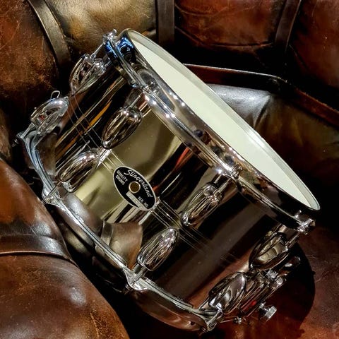 Lækker og spil-levende Vintage Slingerland 7x14" snare fra Juni 59' med Mahogany keddel i flot original WMP finish.