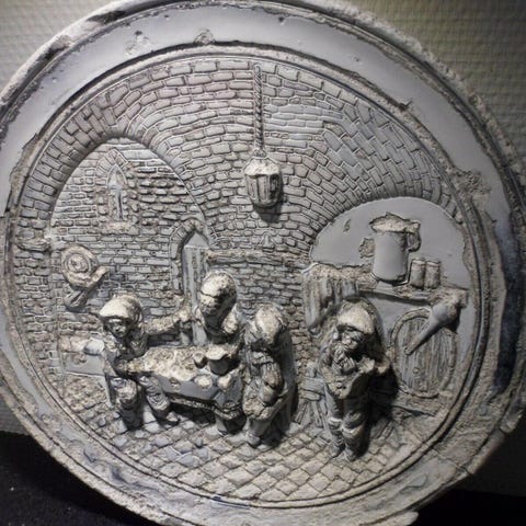 Relief i flammeskåret metal fra 1960erne