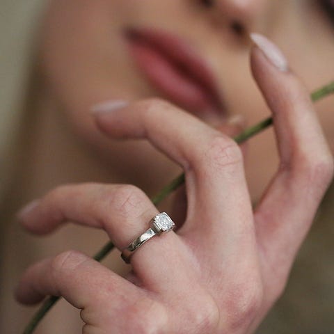 Den elegante solitaire ring udstråler luksus og tidløs klassisk skønhed.