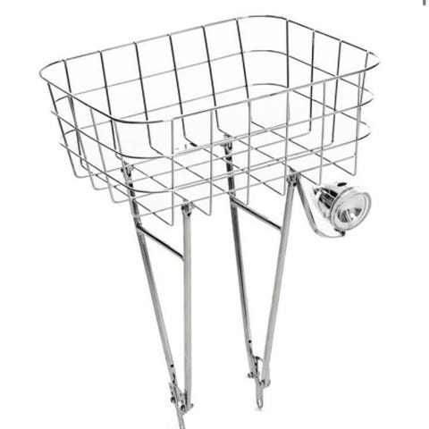 Front panniers can be mounted to the horizontal rails on both sides of the rack legs, and the whole package comes with an attachable light mount.
