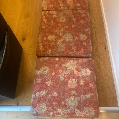 Nyt originalt hyndesæt til GE290 eller GE240. Passer også til sofaen i samme serie. Originale nye koldskum og eget valg af stof. Se mere på hjemmesiden. Fra: