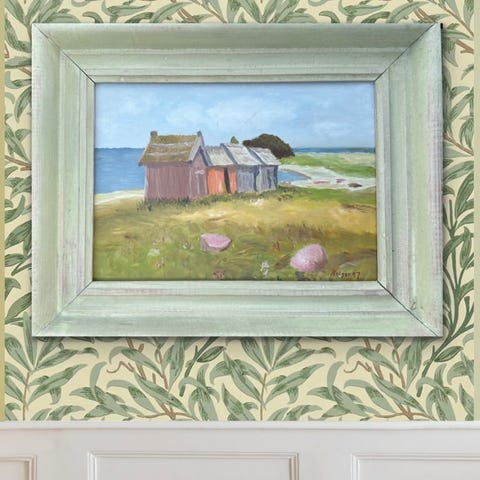 Maleri i smuk forgyldt ramme, oliemaling Danmark