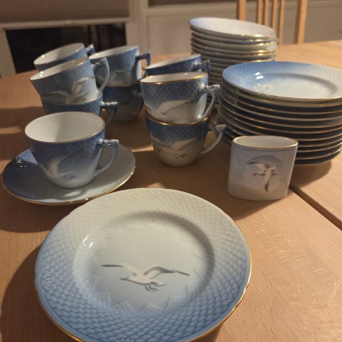 En masse mågestel med guldkant. Ingen skår eller andet. Så i super stand. Stort set alt er i 1. Sortering. Enkelte få dele er 2. Sortering.