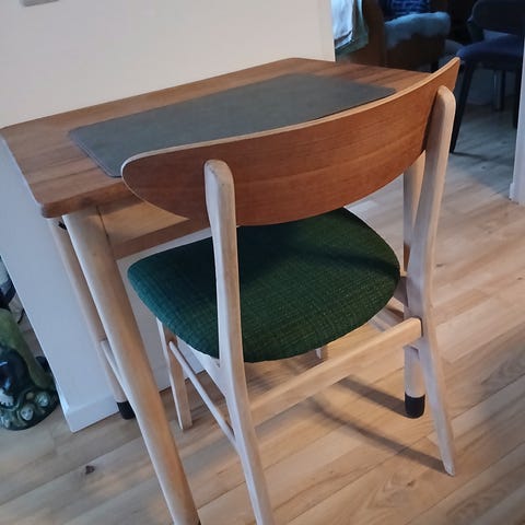 Lille skrivebord/Sminkebord i egetræ fra 70’erne -