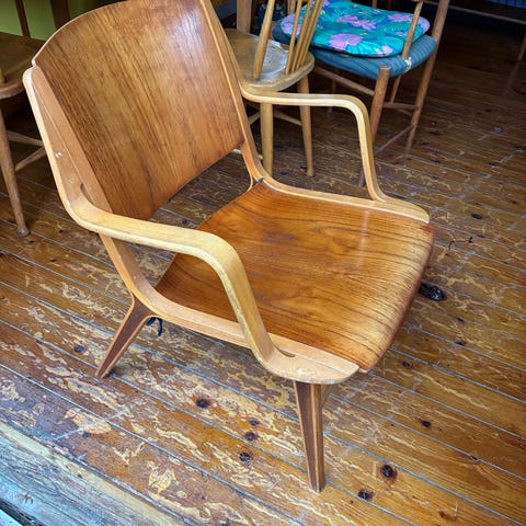 Smuk ny polsteret lænestol i teak/egetræ, designet af Peter hvidt og Orla Mølgaard. Kan leveres for 500kr i DK