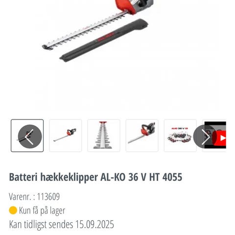 Al-ko batteri hækkeklipper, Model HT 2000, med batteri 20 volt 2,5 ah og lader. Helt ny maskine.
