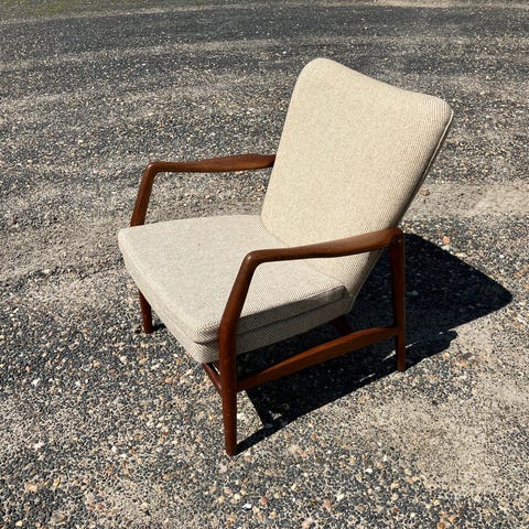 Ejvind a Johansen model 301 lænestol med ben i teak. Pæn stand. Levering kan tilkøbes