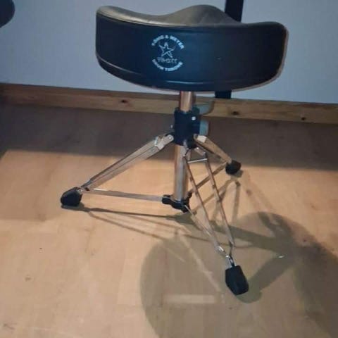 Kraftig Trommestol med trinløs regulering. Er helt fast i bespændingen / vipper ikke og har et godt polstret MC-sæde som er behageligt for benene. Absolut en af de bedste og mest solide trommestole vi nogensinde har prøvet til prisen.