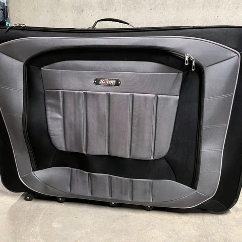 Let cykeltaske/cykelkuffert til sikkert transport af racercykler. Nem og hurtig ned -og udpakning da du bare skal have hjulene af. Det anbefales dog at man også lige afmontere kæde og bagskifter - for en sikkerheds skyld…