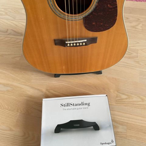 Guitarstativ Click-On... Det nye smarte guitarstativ som clickes på guitaren, justeres med de 4 skruer, og derefter kan guitaren bare stilles...