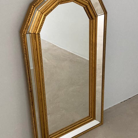 Gyldent antikt vægspejl i guldramme smukt dekoreret