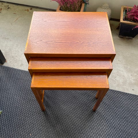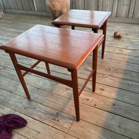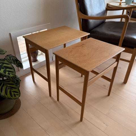 Hans J Wegner indskudsbord i teak/eg fremstår med overfladiske brugsspor. Samlet pris. Levering kan tilkøbes