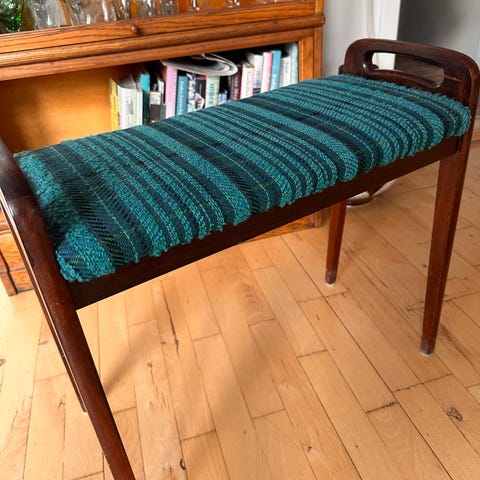 Palisander klaverbænk med rum. Den er 66 cm. Lang 32 cm. Bred og 55 cm. Høj. Prebensgenbrugsshop-Nakskov Lolland Falster
