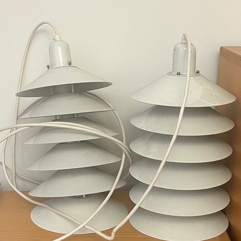 Duett vintagelamper, designet af Bent Gantzel Boysen for IKEA i 1983 - her i original, hvid lakering (de ser lidt gule ud, da lyset var dårligt…)