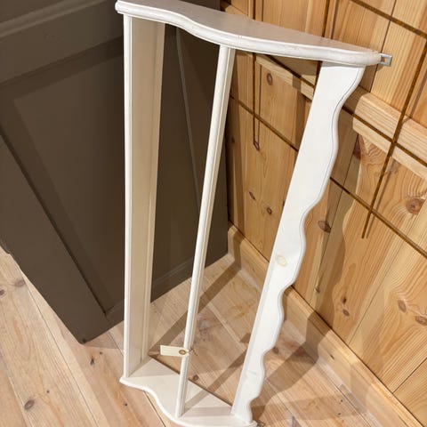 Tallerkenrække hvidmalet. Den er 98 cm. Bred og 60 cm. Høj.