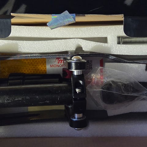Der kan vælges i mellem aluminium eller kulfiber. Styringsdæmperen er ens uanset, hvilken af de tre ovenstående modeller du skal have, men beslagene er forskellig. Du vælger dette ved bestilling, inden du går til betaling, så du er sikker på, at få beslag til den korrekte model.