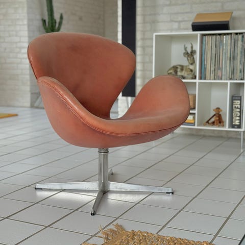 Arne Jacobsen smukke svane for Fritz Hansen, tidlig model, 1960’ernes begyndelse, profileret firepasfod af aluminium, ny polstret med imiteret uld samt nyt skum. Flot stand! Levering kan tilkøbes