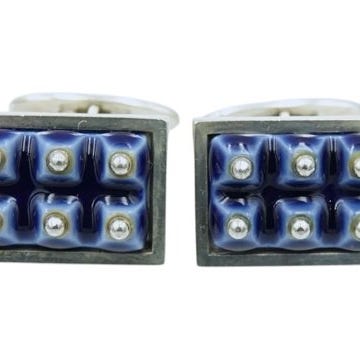 Manchetknapper Royal Copenhagen med blå blomster dekoreret porcelæn og sølv.
