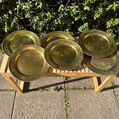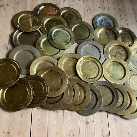 MANGE dækketallerkner i massiv messing: