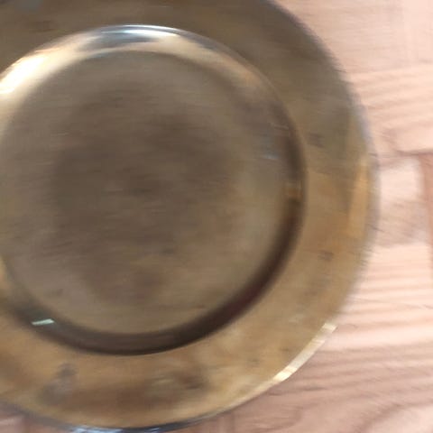 Billede 7-8: Smukke dækketallerkner i messinglegering med fint forarbejdet perlekant. Har 5 stk i fin stand med nogle ridser, se billeder.PRIS: 250kr/5stk. Sælges kun samlet