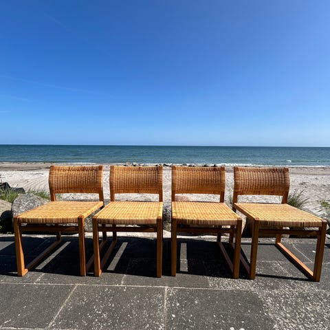 4 Børge Mogensen stole model Bm61 udført i mahogni, læder hynde følger med. Sælges samlet.