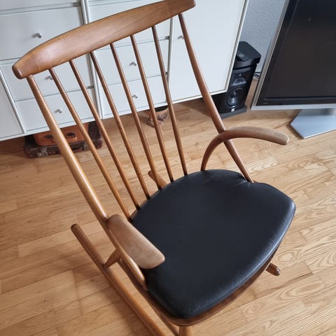 Den smukkeste Illum wikkelsø gyngestol i egetræ, flot stand! Levering kan tilkøbes