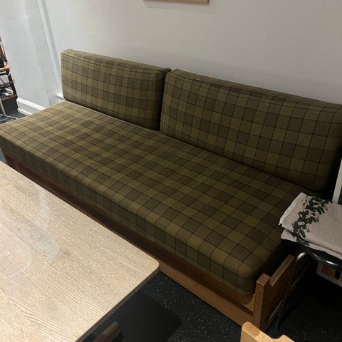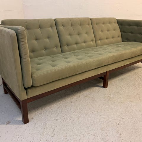 Smuk Illum wikkelsø sofa med kryds ben af egetræ. Pæn patineret stand. Levering kan tilkøbes