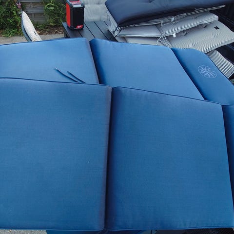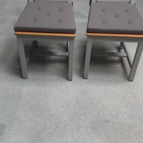 4 Danskproducerede hynder i pastelfarvet grå/blåt stof. Stofkvalitet Melrose farve 72. Stolen er ikke omfattet af dette køb men vises som model.