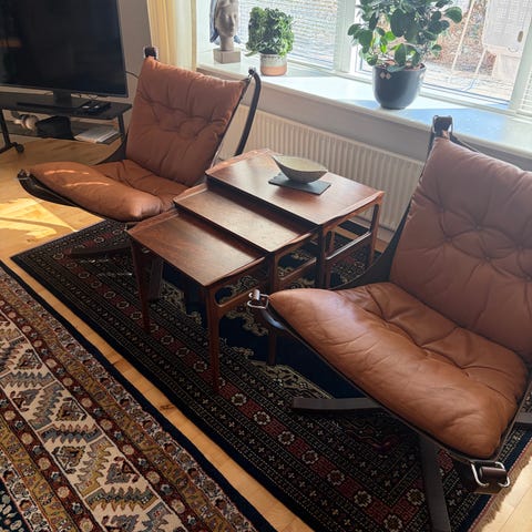 Smuk stand med normale lette brugsspor. Det største bord måler: H: 52, L: 57, D: 37 cm. Se disse smukke borde i vores forretningen eller på hjemmesiden. Fragt kan tilkøbes på hjemmesiden.